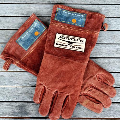 The right hand glove features our exclusive Steakhouse & BBQ design, personalized with your name and an established date. It's the perfect gift for the dedicated grill master!