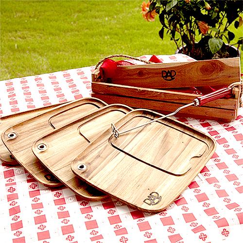 Rockin' Dad BBQ Branding Iron with Cedar Gift Box and Acacia Wood Steak Plates