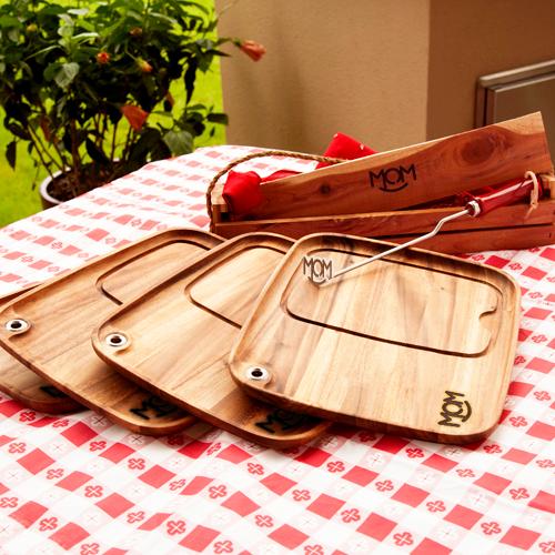 Rockin Mom BBQ Branding Iron with Cedar Gift Box and Acacia Wood Steak Plates