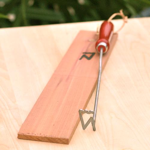 • Stainless steel branding iron tip and shaft, wooden handle.